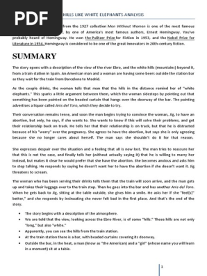 Literary Analysis Of Hills Like White Elephants 1 Literary Analysis Of Hills Like White Elephants The Short Story Hills Like White Elephants By Course Hero